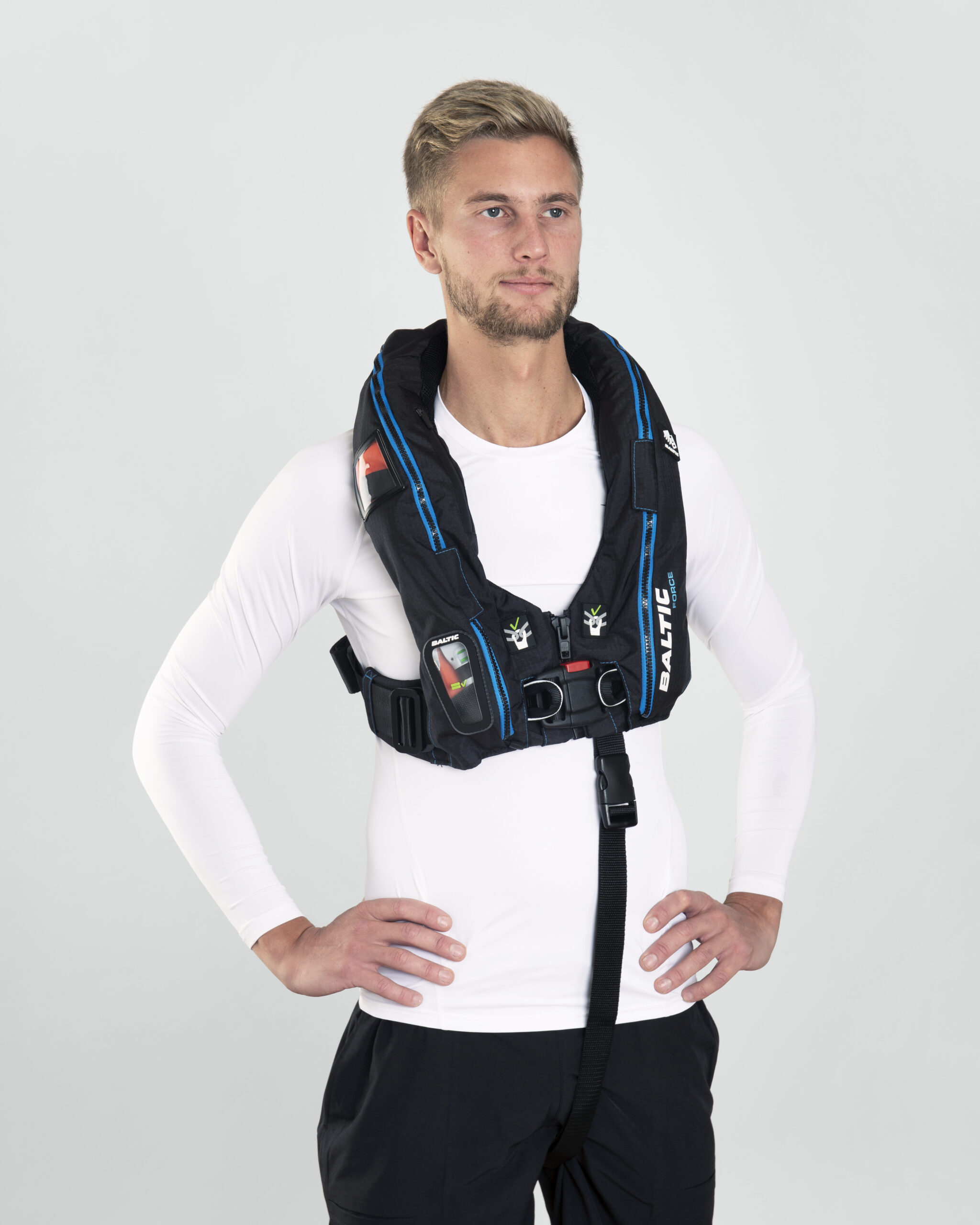 Baltic Force 190 is one of our most advanced inflatable lifejacket, specially developed for tough offshore racing conditions. Thanks to its ergonomic design, this lifejacket sits comfortably even for prolonged periods. The SLA version is suitable for ocean sailing, approved according to the World Sailing OSR. This variant has sprayhood, emergency light, and an AIS-transmitter. Integrated safety harness with double loops to attach the lifeline to, detachable crotch strap and whistle. Carrying capacity of 190N and is classified as a lifejacket.